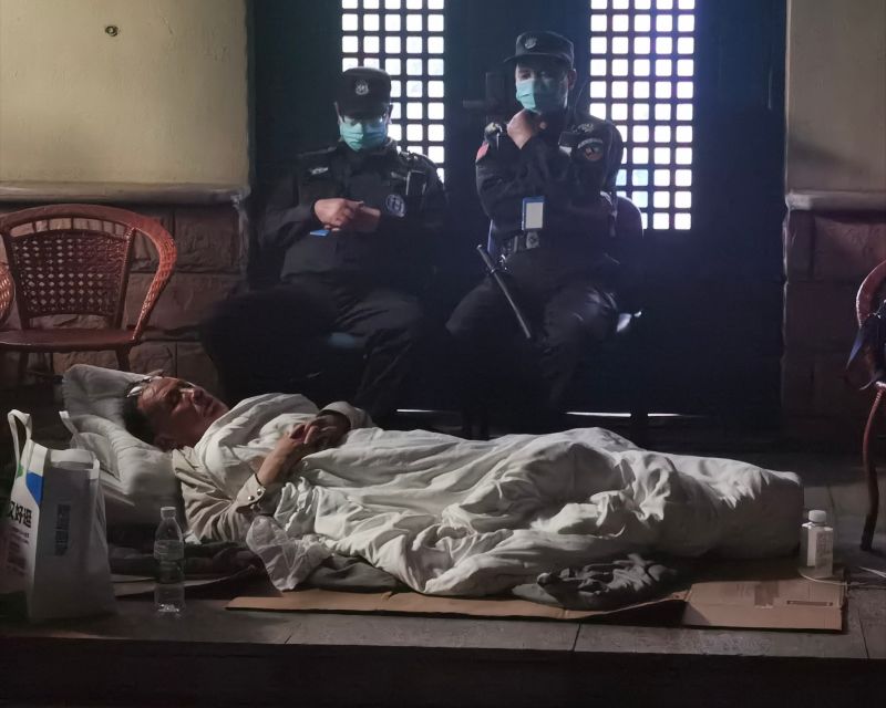 Images posted on social media this week appeared to show Zhang wrapped in blankets and sleeping on the doorstep of the lab building as security guards hovered over him.