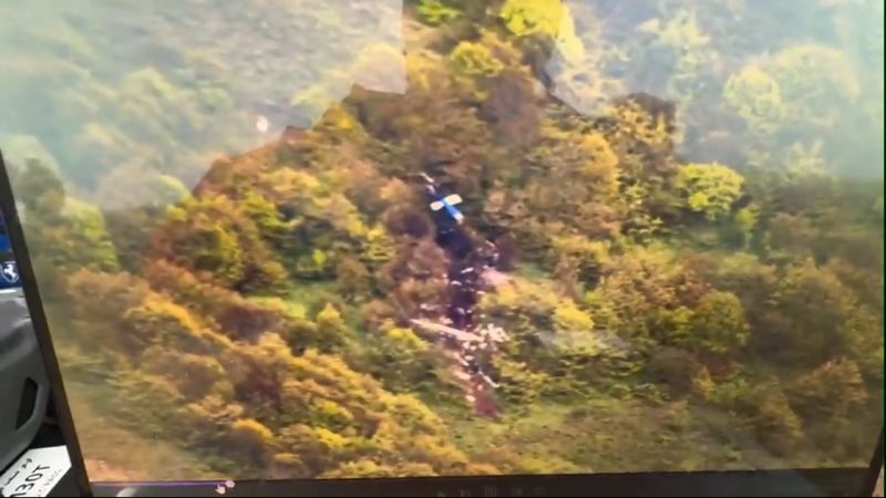 Drone footage of the helicopter wreckage taken by the Red Crescent and carried on Iranian state media showed the crash site on a steep, wooded hillside, with little remaining of the helicopter beyond a blue and white tail.